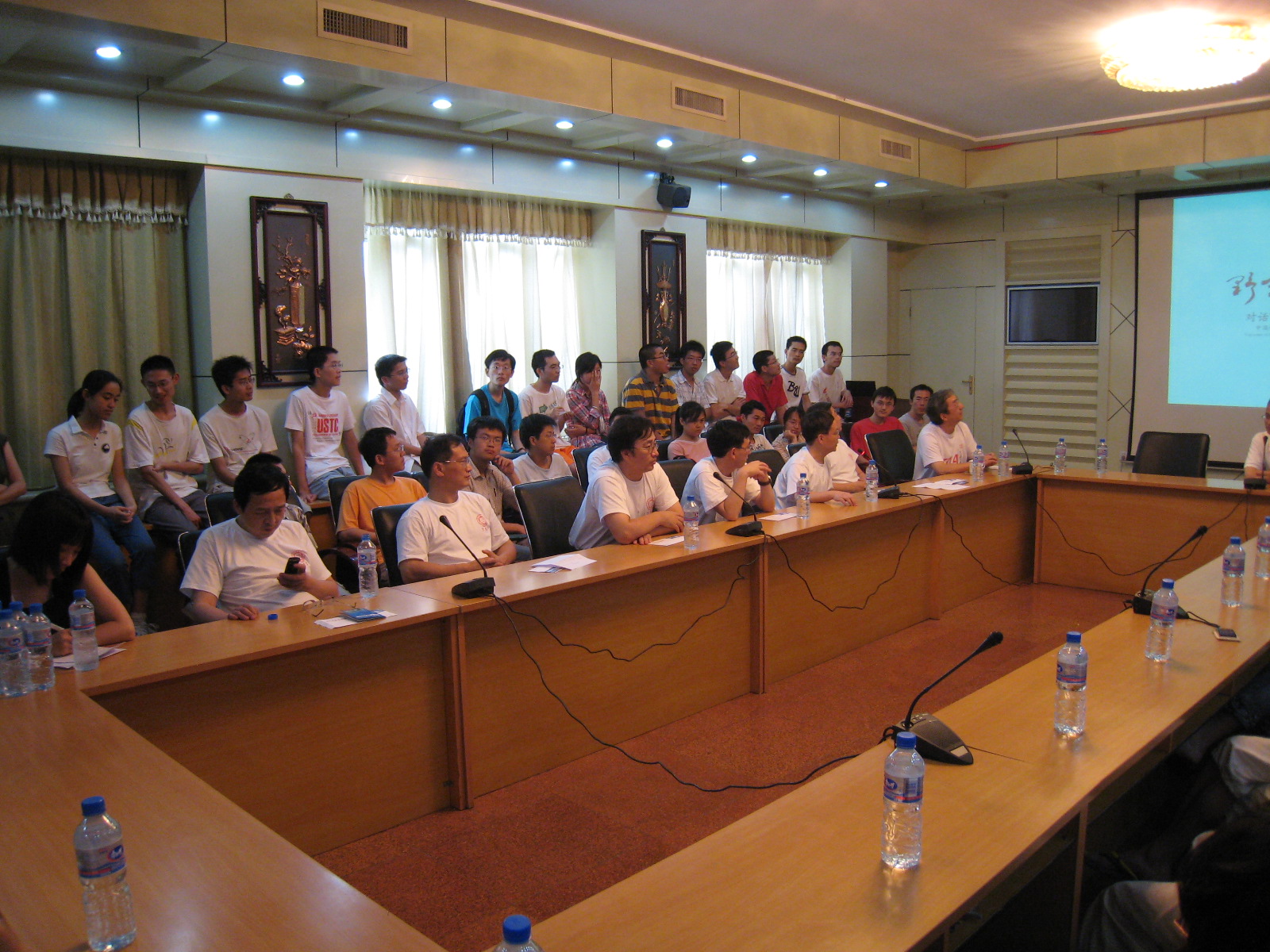 7月18日,了解到同学与校友交流的愿望之后,772校友临时决定在19日下午举行座谈会。774校友也派国立台湾大学物理学教授何小刚来到座谈会现场。 尽管有参观物理系等冲突行程,782或78少的彭兴(佳能公司)、吴彦、聂文江(法国圣戈班中国区总裁)、翁征宇(清华大学杨振宁讲席教授)、穆荣平 (中科院科技政策与管理科学研究所所长)、姜晓明(中科院高能物理所副所长)等也到现场与同学交流。出席座谈会的772校友有刘骊松(睿励科学仪器软件工程总监)、张洪、曹效业(中科院副秘书长)、单文钧(中科院固体物理所副所长、原马鞍山市副市长)、周先意(中国科技大学人事师资处处长、理学院教授)。